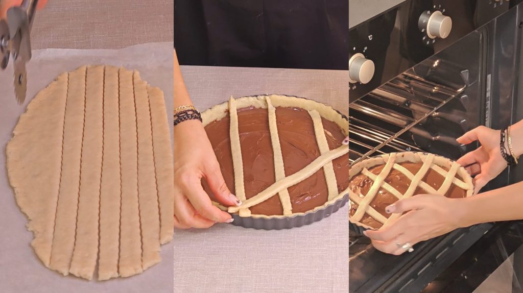 maak repen en leg ze bovenop de taart om het klassieke rasterpatroon te vormen. Bak in een voorverwarmde statische oven op 180°C gedurende ongeveer 40 minuten, tot hij goudbruin is.