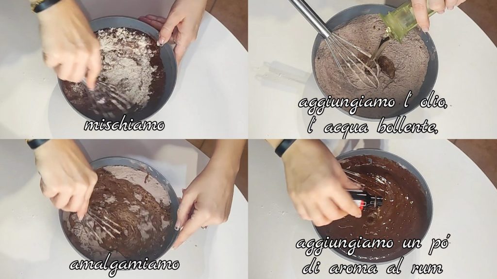 • Meng. Voeg de olie, het kokende water toe en meng goed. Voeg een beetje rumaroma toe.