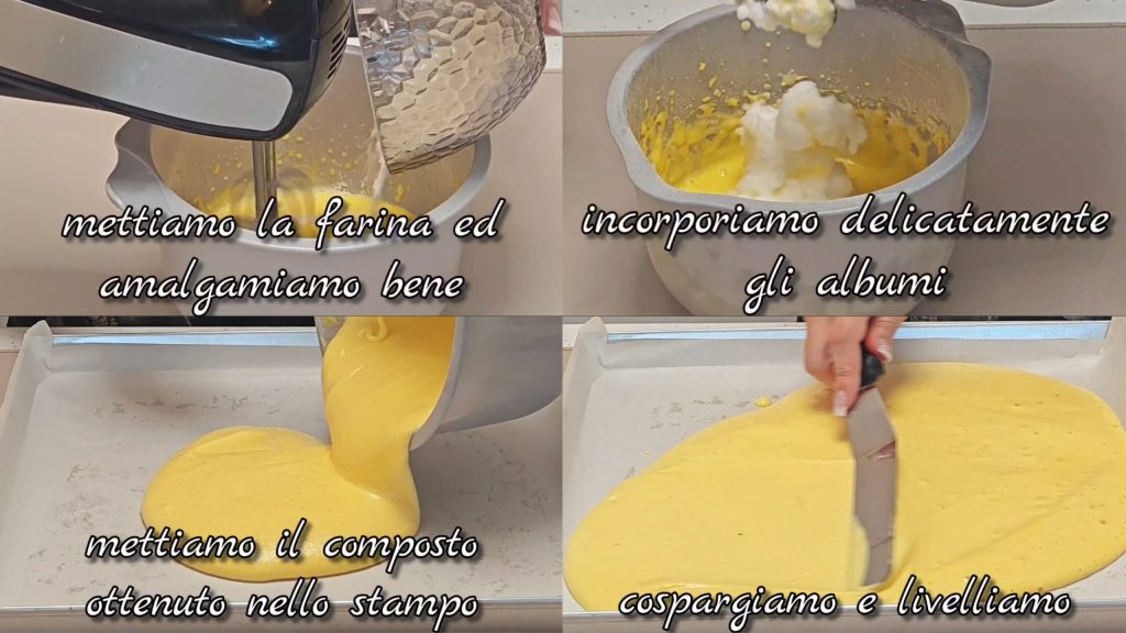 Voeg beetje bij beetje het stijfgeklopte eiwit toe en meng voorzichtig met opwaartse bewegingen om het mengsel niet te laten inzakken.