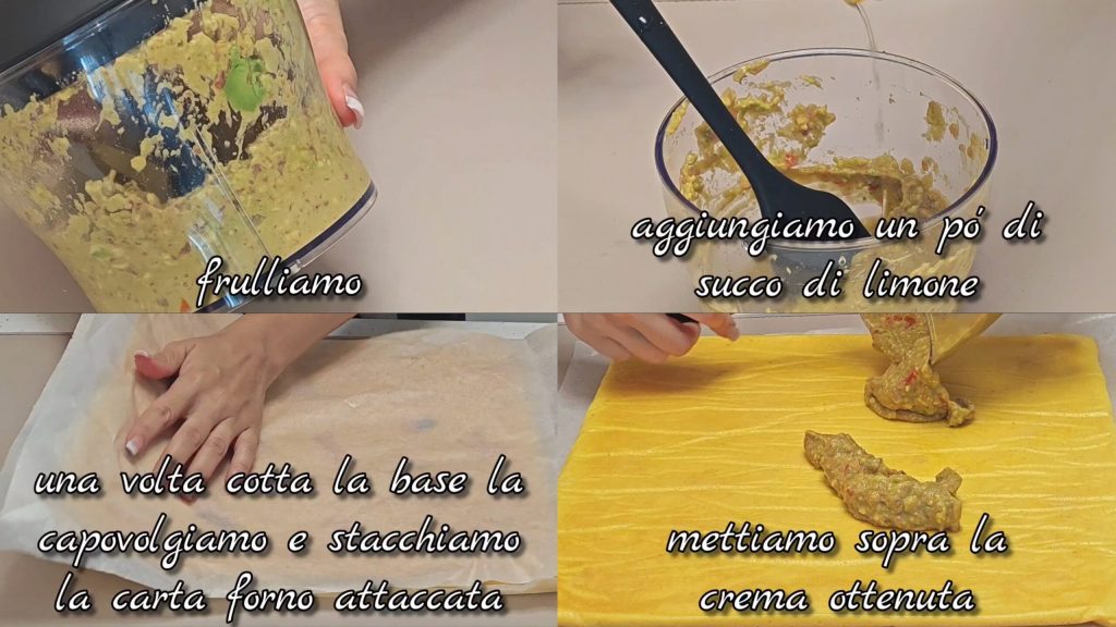 Smeer de avocadocrème gelijkmatig over de gehele oppervlakte van de basis.