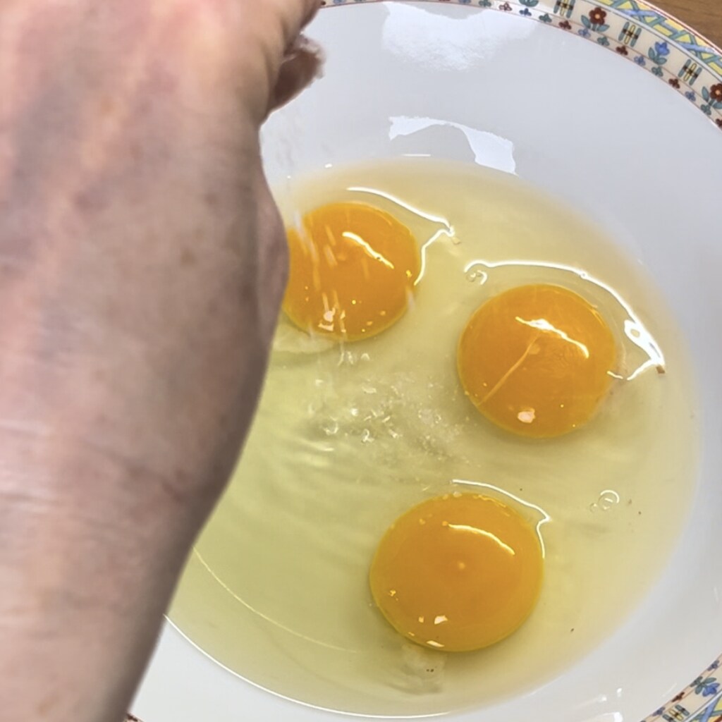 • Klop de eieren in een kom