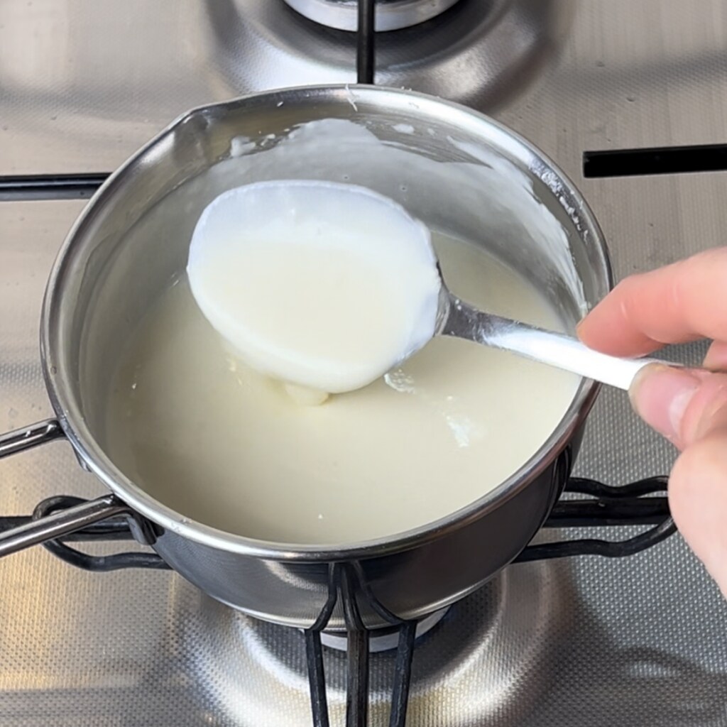 • Doe de geraspte pecorino samen met de room in een steelpan en begin langzaam te verwarmen