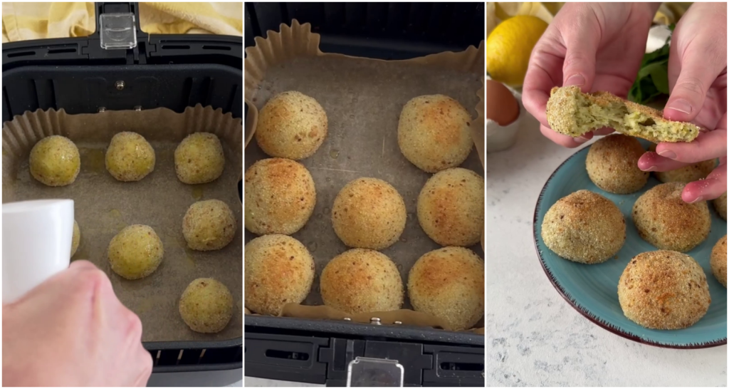 De mozzarella balletjes met citroen in de airfryer zijn een heerlijk voorgerecht of hoofdgerecht, perfect voor elke gelegenheid, die eenvoud en smaak in één bereiding verenigt. Ideaal voor een smakelijk aperitief, een lichte lunch of een familiediner, zijn deze balletjes een creatieve en originele herinterpretatie van de klassieke gehaktballen. Het hoofdingrediënt, de mozzarella, geeft een zachte en draderige textuur die bij de eerste hap indruk maakt, terwijl het koken in de airfryer dit gerecht lichter en gezonder maakt dan traditioneel frituren.