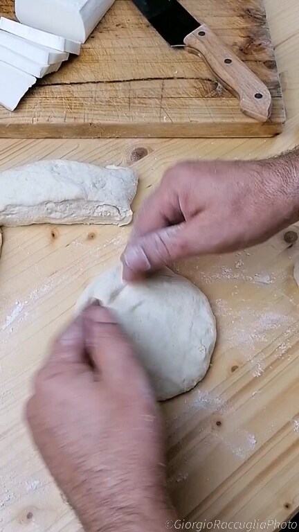 • blijf kneden totdat het deeg glad is. Laat het 2 uur rijzen in een kom bedekt met folie, in een uitgeschakelde oven met het licht aan.