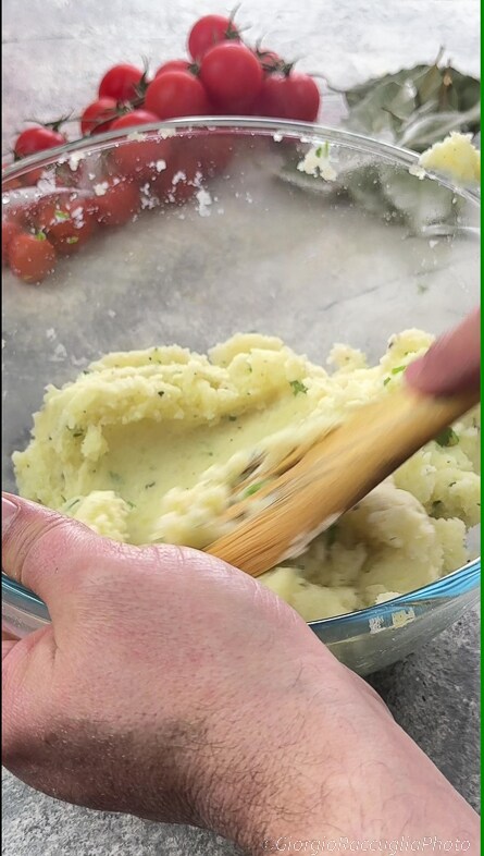 voeg een eetlepel van het aardappelmengsel toe binnenin en