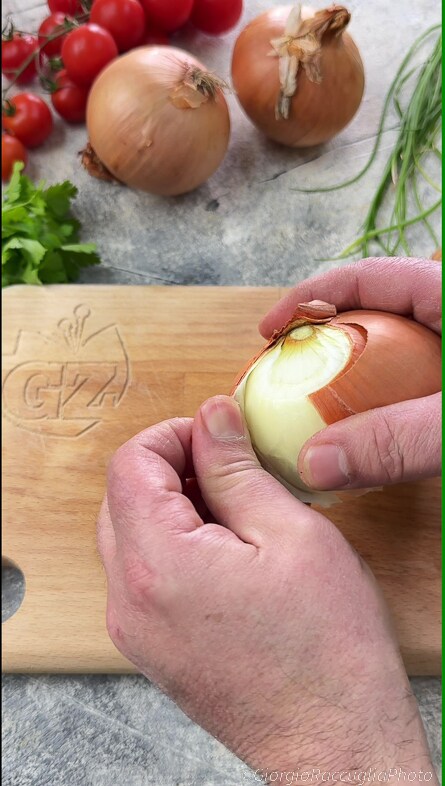 Neem nu de uien en verwijder alle lagen,