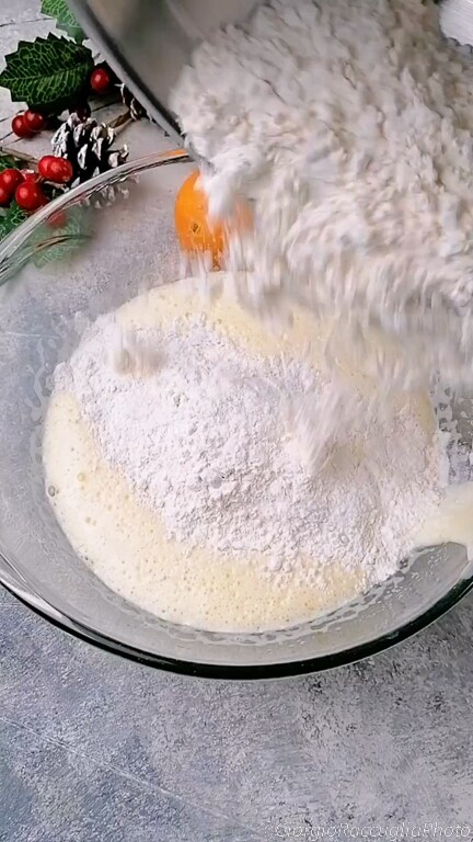 blijf mengen. Het moet een niet te dik mengsel worden, zo niet, voeg wat sinaasappelsap toe.