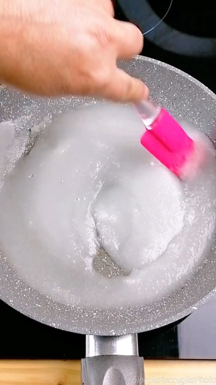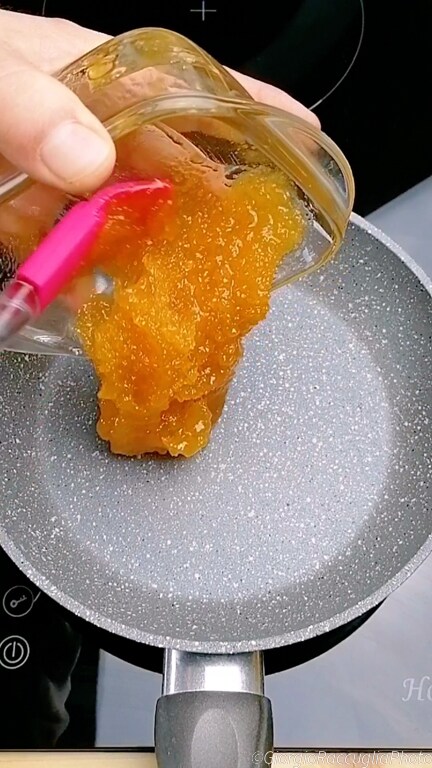 Breng het mengsel over in een steelpan en laat het drogen door het mengsel op een zeer laag, bijna uitstaande vlam te roeren.