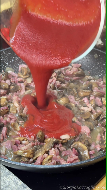 Mix het onmiddellijk met de boscaiola saus, goed mengen.