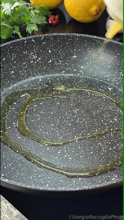 • Verwarm ondertussen 4 eetlepels extra vergine olijfolie in een grote pan.