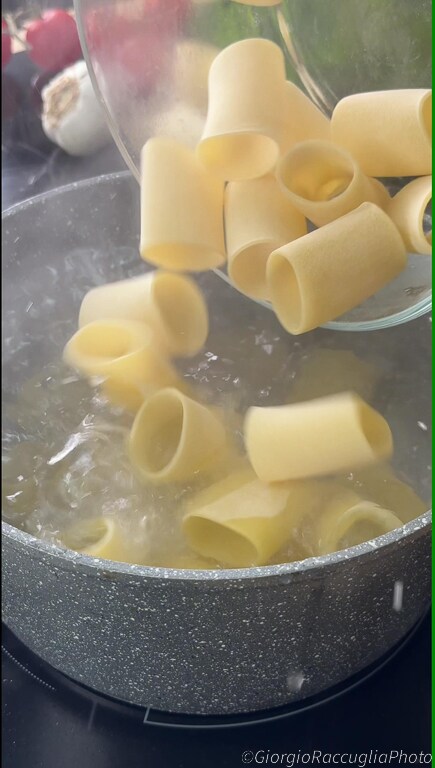 giet deze 2 minuten voor het einde van de kooktijd direct in de pan met de saus.