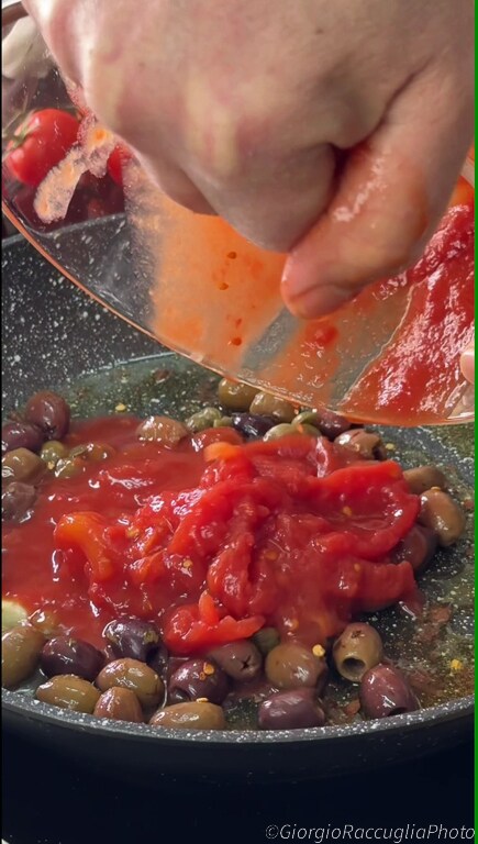 De essentie van pasta alla puttanesca ligt in de combinatie van een paar essentiële ingrediënten, allemaal typisch voor het mediterrane dieet. De saus is gebaseerd op rijpe of gepelde tomaten, verrijkt met olijven, kappertjes, knoflook en ansjovis, alles versterkt door een snufje chilipeper om een vleugje levendigheid aan het gerecht te geven. Deze ingrediënten versmelten tot een rijke en geurige saus, perfect om de pasta te omhullen, meestal spaghetti of linguine, die de intense smaak ervan naar voren brengen.
