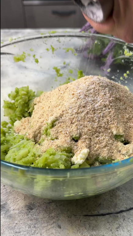 Voeg de geraspte Parmezaanse kaas toe,