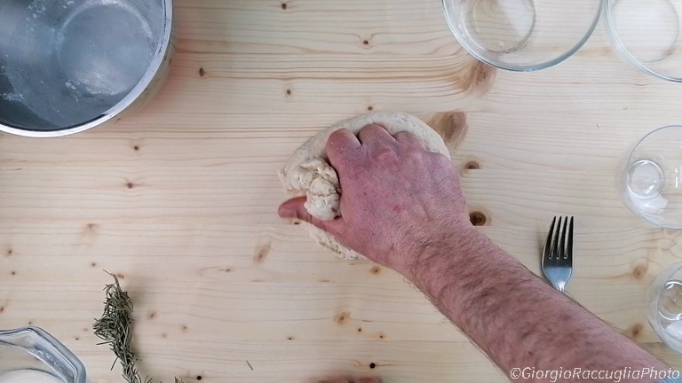 en blijf kneden, eerst in de kom en daarna op het werkblad.