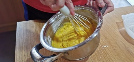 • Voeg vervolgens de bloem toe, meng met de garde om eventuele klontjes te verwijderen.