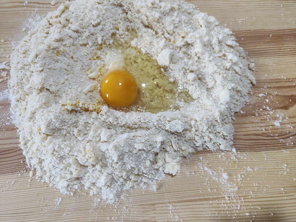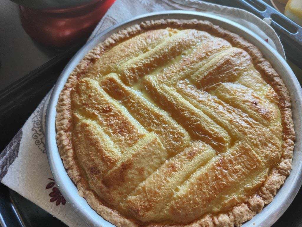 Maar de eigenaardigheden zijn hier nog niet voorbij: dit zo bijzondere dessert heeft in feite een gewone zandkoekdeegschelp, en tot zover alles goed, met een ietwat ongewone vulling, bestaande uit savoiardi en een mengsel van melk en eieren, een beetje alsof het een zoete quiche is. Nieuwsgierig, toch?