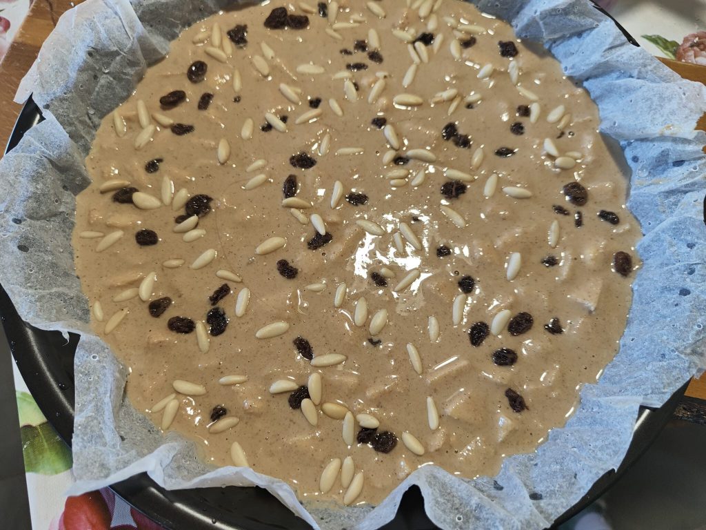 Je kunt ook Castagnaccio bereiden zonder pijnboompitten, door de hoeveelheid rozijnen te verhogen, of Castagnaccio zonder rozijnen, door het te vervangen door extra pijnboompitten en gehakte walnoten.