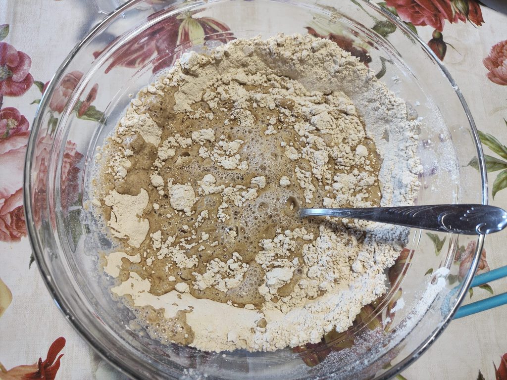 Wanneer je de juiste consistentie hebt, voeg de uitgelekte, uitgeknepen en met keukenpapier gedroogde rozijnen toe aan het beslag.