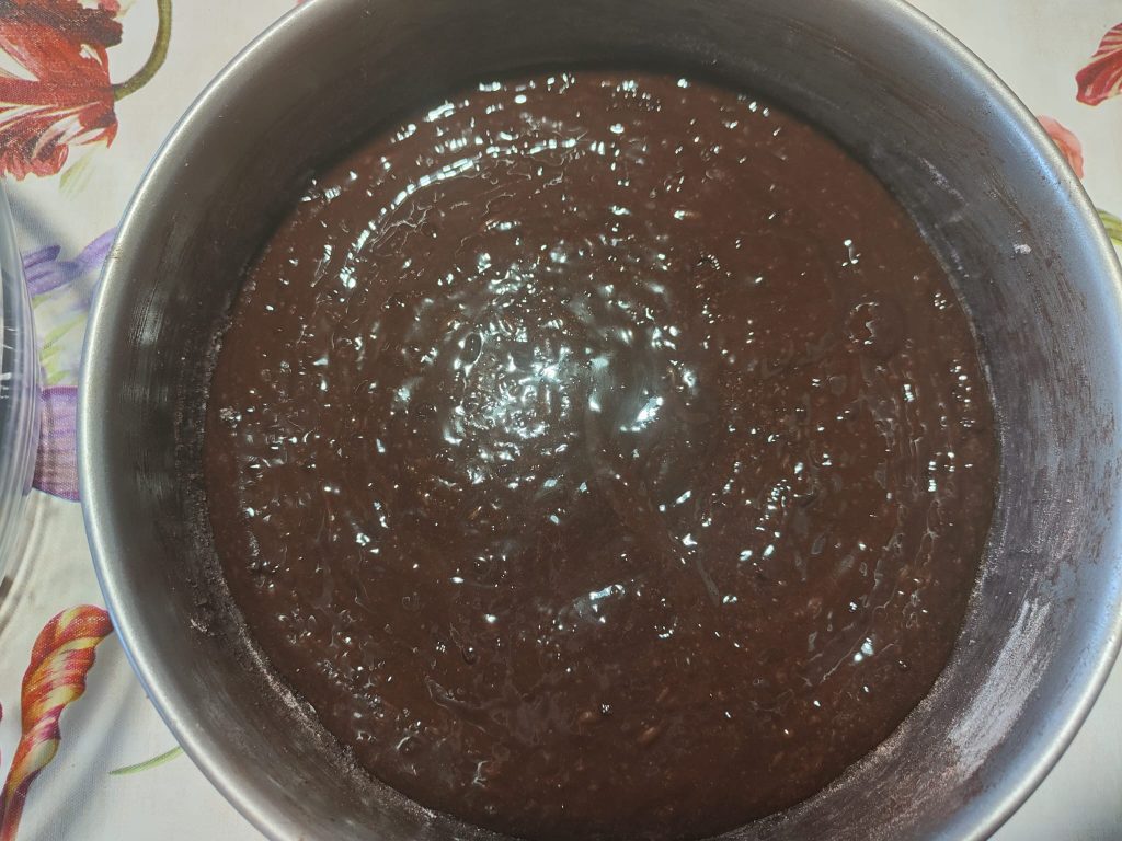 • Giet het mengsel in een ingevette en met cacao bestoven bakvorm met een diameter van 26 cm.