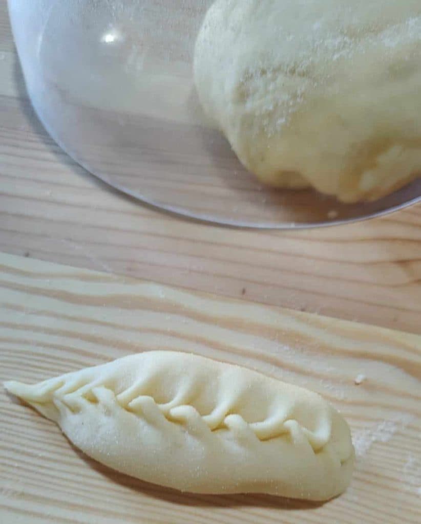 Voordat je ze proeft, vallen ze op door hun elegante uiterlijk: het deeg, met zijn vulling, wordt vakkundig geborduurd met de karakteristieke spighitta-sluiting, het kenmerkende kenmerk van deze uitmuntendheid. De uiteindelijke vorm is die van een druppel, met een licht gebogen, halve maanprofiel en het onmiskenbare borduurwerk dat over de hele lengte loopt.