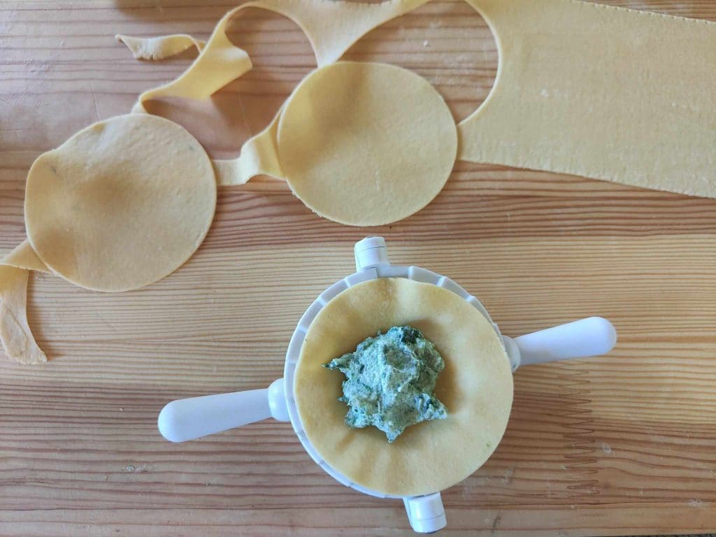 De dikte van het pansotti-deeg moet zeer dun zijn: eenmaal gekookt moet de intens groene kleur van de vulling door het deeg te zien zijn.
