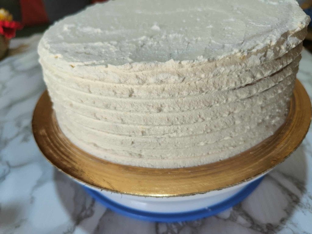 Strijk de slagroom langs de gehele omtrek en bovenkant.