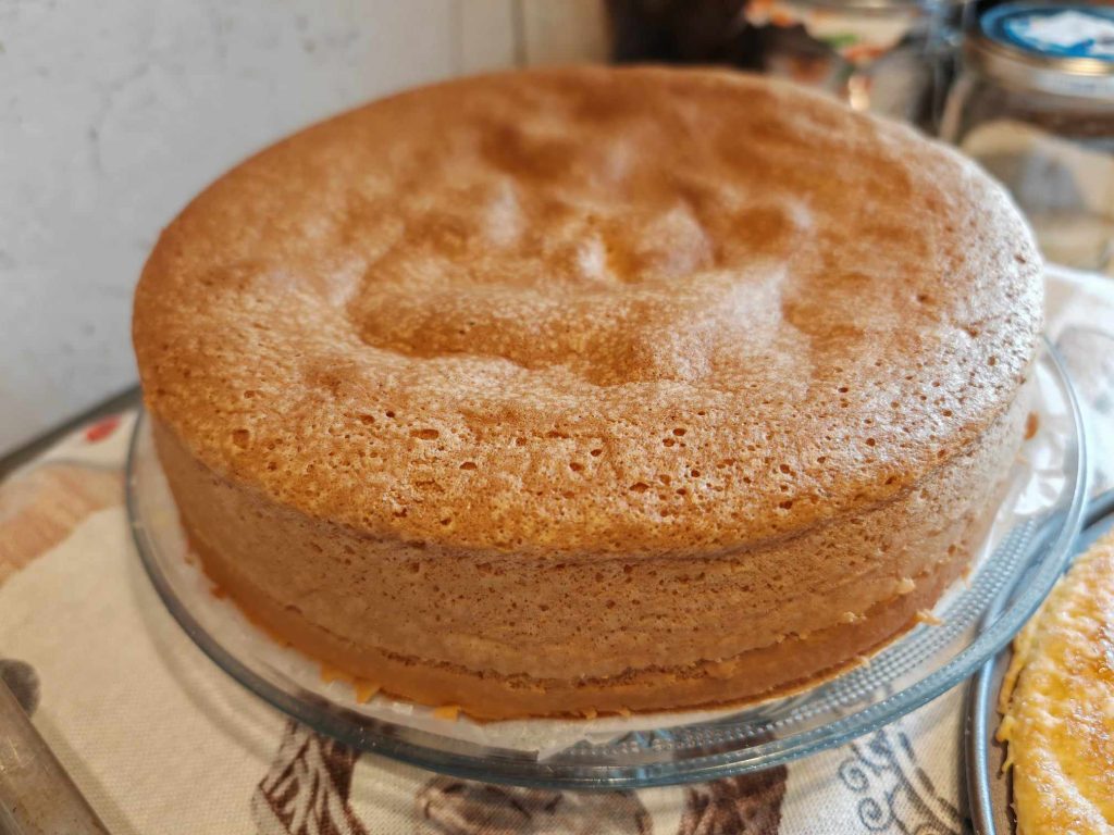 Bak in de voorverwarmde statische oven op 180° gedurende ongeveer 35/40 minuten (of in een heteluchtoven, op 160° gedurende ongeveer 30-35 minuten), totdat de bovenkant van de biscuit goudbruin is (als het te donker begint te worden, bedek de vorm dan met bakpapier en daarboven nog een vel aluminiumfolie).