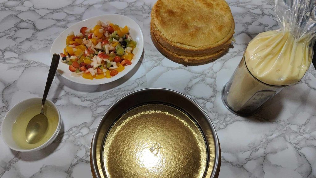 De diplomatiektaart kan in ronde of rechthoekige vorm worden bereid, zoals in mijn geval koos ik voor de ronde vorm.