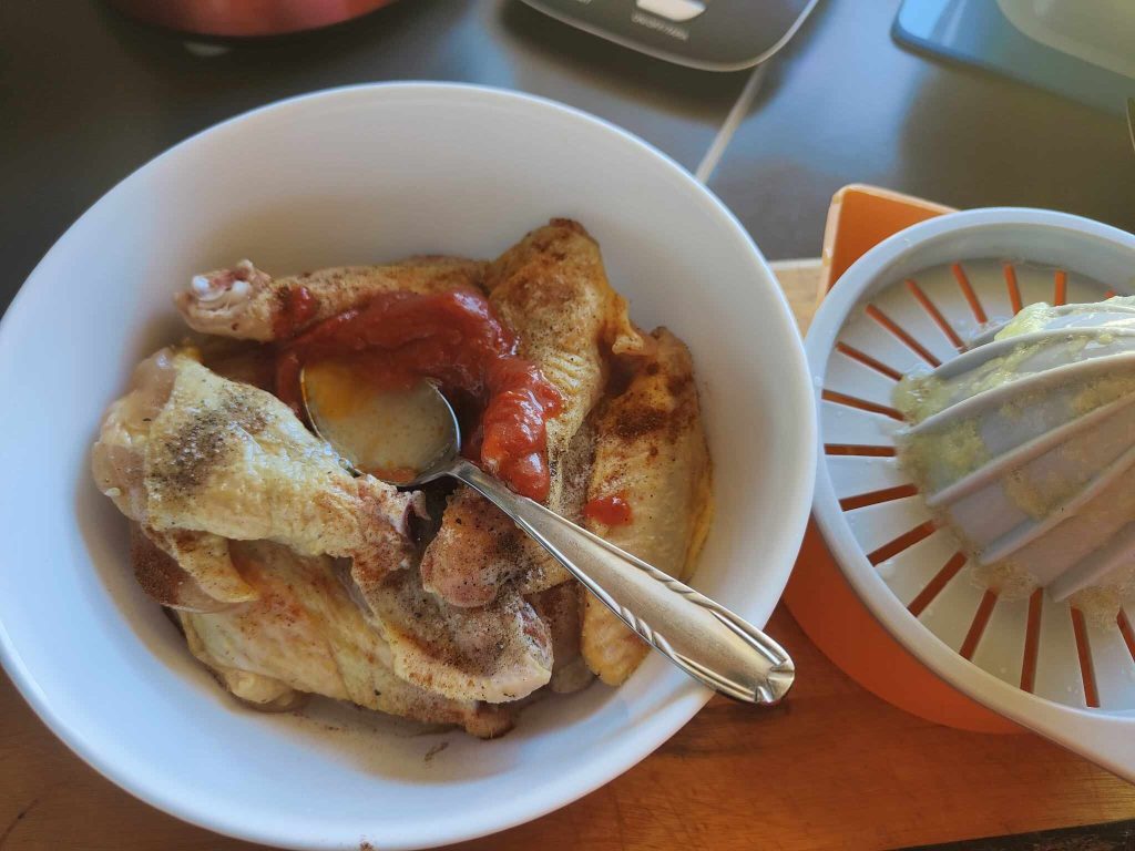 (Als je wilt, kun je aan de marinade chilipeper toevoegen en in plaats van de saus barbecuesaus gebruiken).