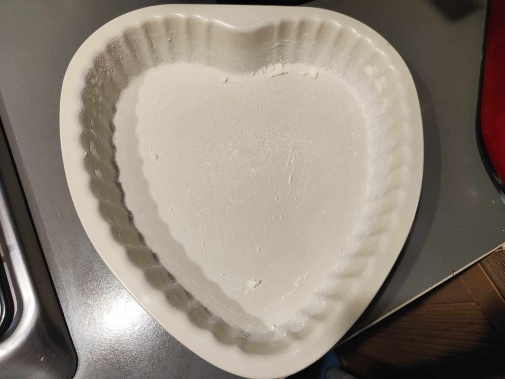 Bereid eerst de hartvormige bakvorm voor, vet deze in en bestrooi met een dun laagje bloem, verwarm de oven voor op 180°C. statische stand.