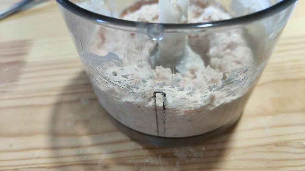 • Meng het mengsel met een lepel tot je een stevige en droge massa krijgt.
