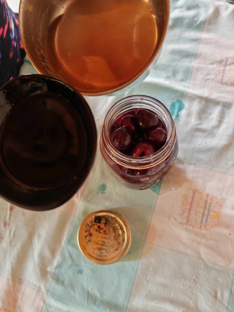 Hoe lekker zijn zelfgemaakte kersen op siroop. Zoveel robijnen en zo zoet, een smaakconcentraat dat je doet dromen.