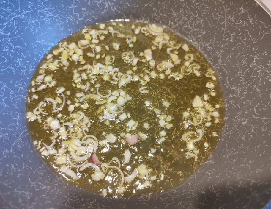 Roer goed zodat het vlees meteen die diepe gele kleur opneemt.