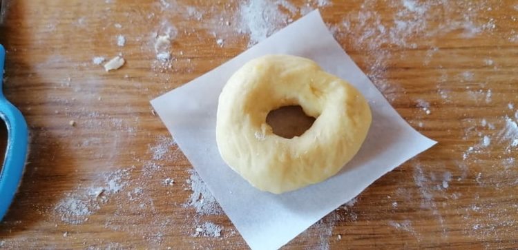 Geef de stukjes deeg een ronde vorm. Vorm van de stukjes donuts.