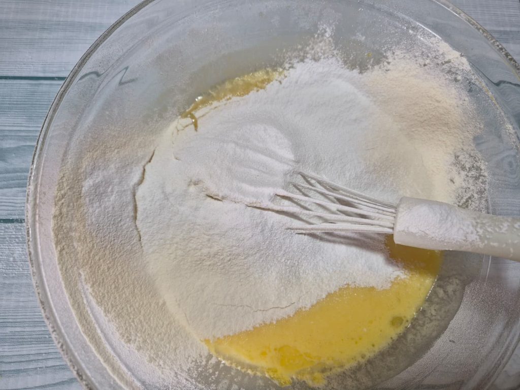 • Pureer het eiwit met poedersuiker en amandelen.