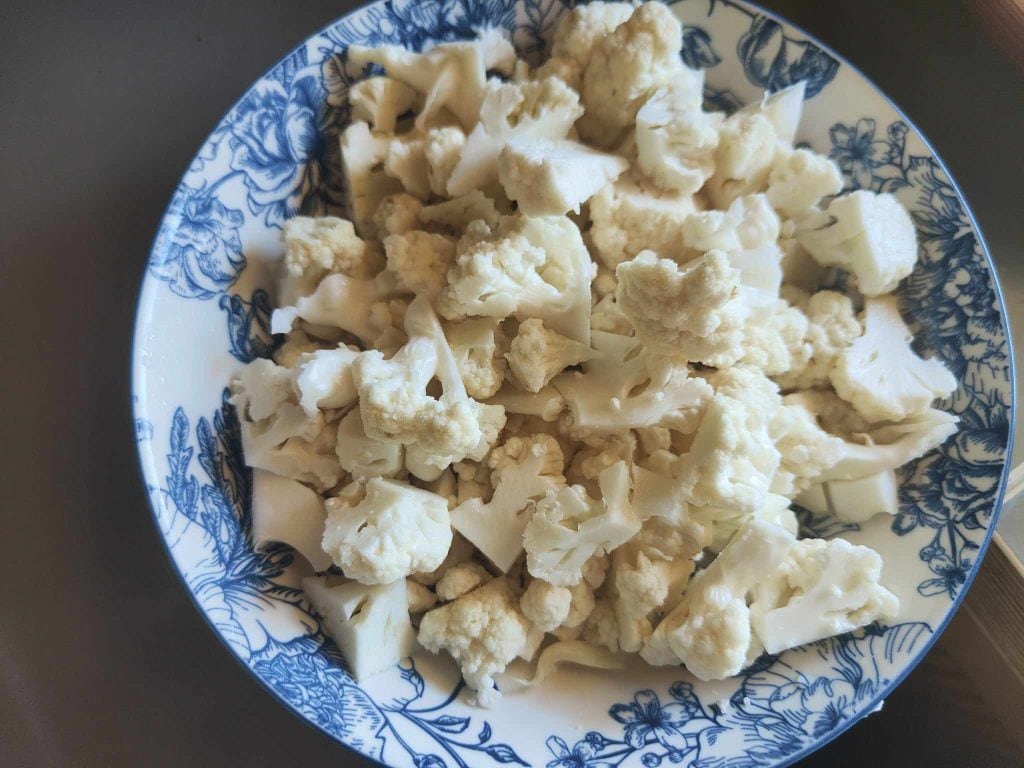 Was eerst de bloemkool en snijd deze in kleine stukjes (door deze met de hand of met een mes te verkruimelen).
