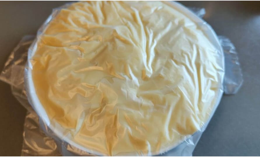 (Dek af met plasticfolie, direct op het oppervlak van de room geplaatst om te voorkomen dat er een dun vel ontstaat).