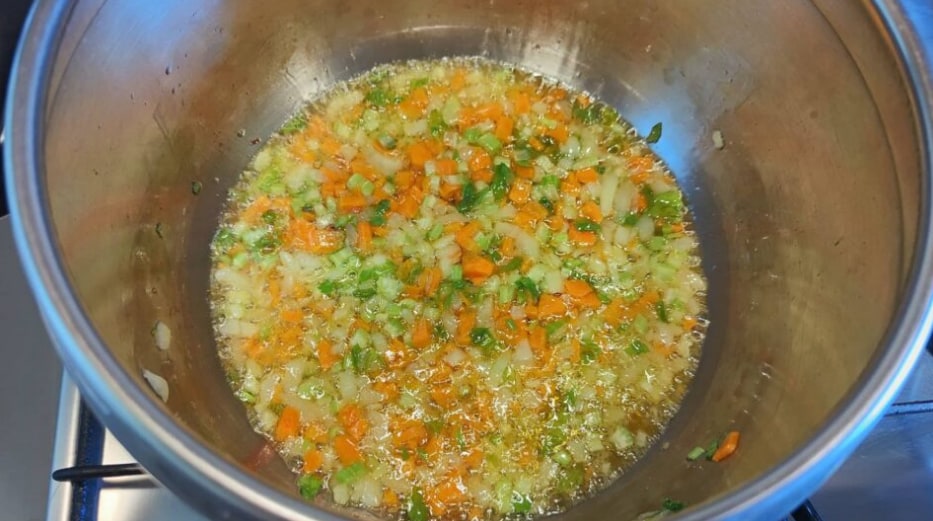 Laat de groenten 2/3 minuten zacht worden, terwijl je het vuur iets lager zet en ervoor zorgt dat de groenten niet verbranden.