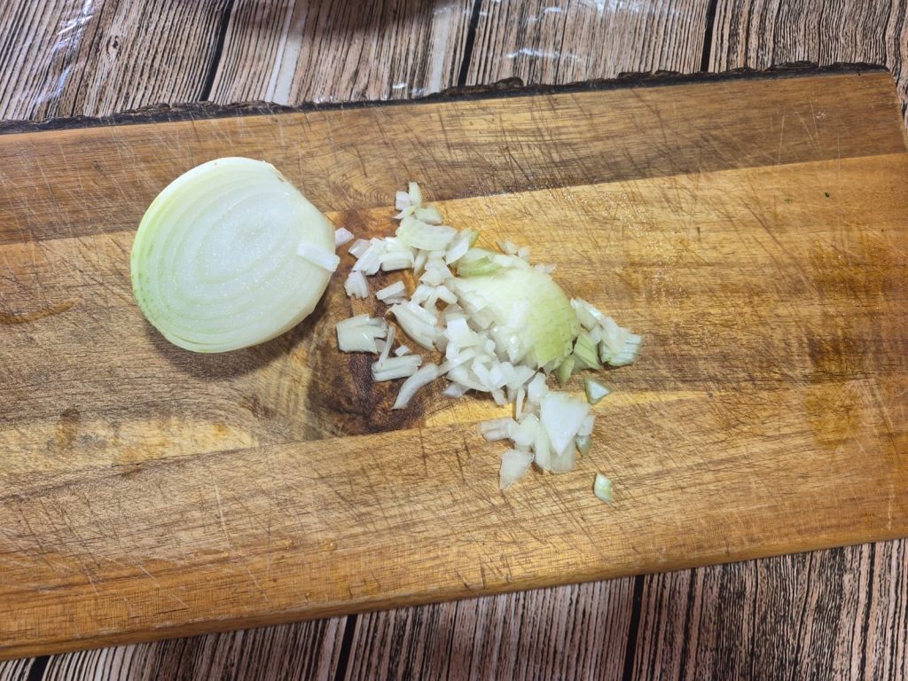 - 1 1/2 gele ui (of knoflook: om de tomatensaus op smaak te brengen)
