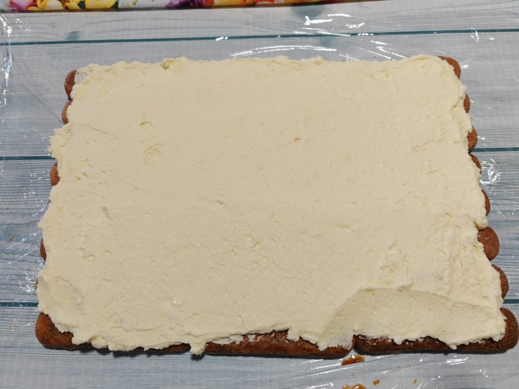 Een tip die ik je kan geven is om de savoiardi niet te nat te maken, maar ook niet te weinig, juist genoeg zodat ze moeten buigen maar niet breken bij het vormen van de rol