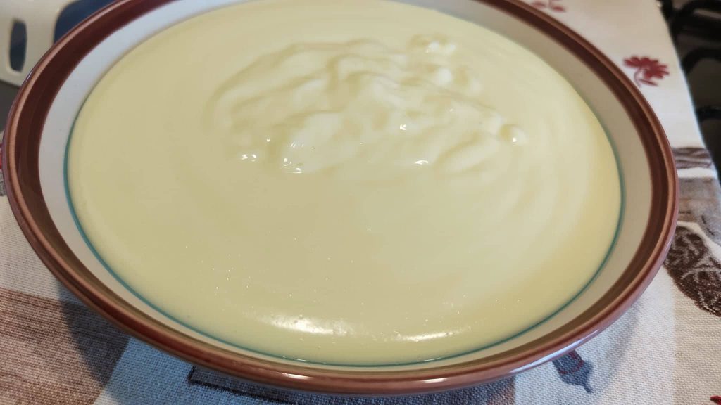 (Giet het in een kom en laat afkoelen met folie aan de oppervlakte).