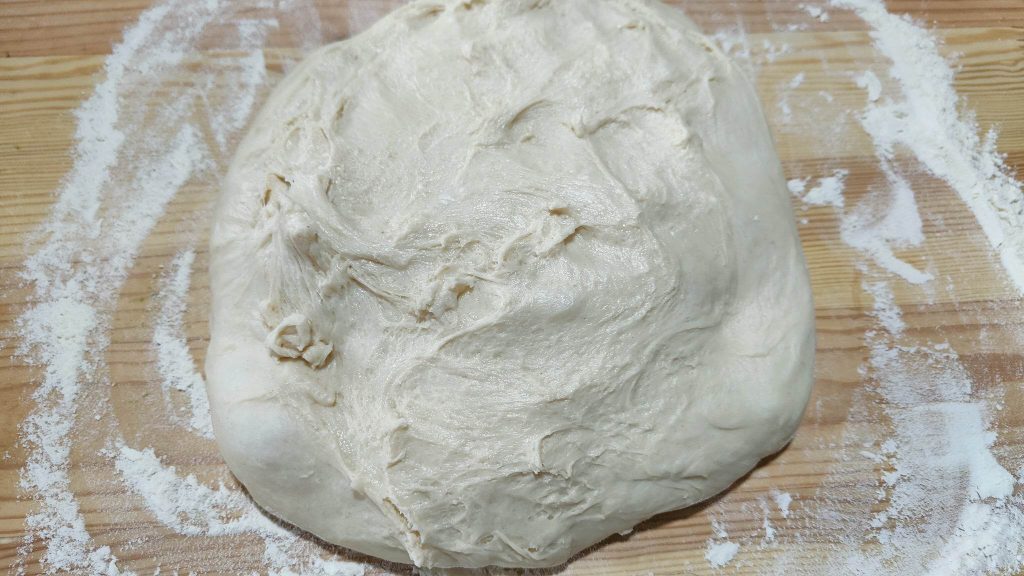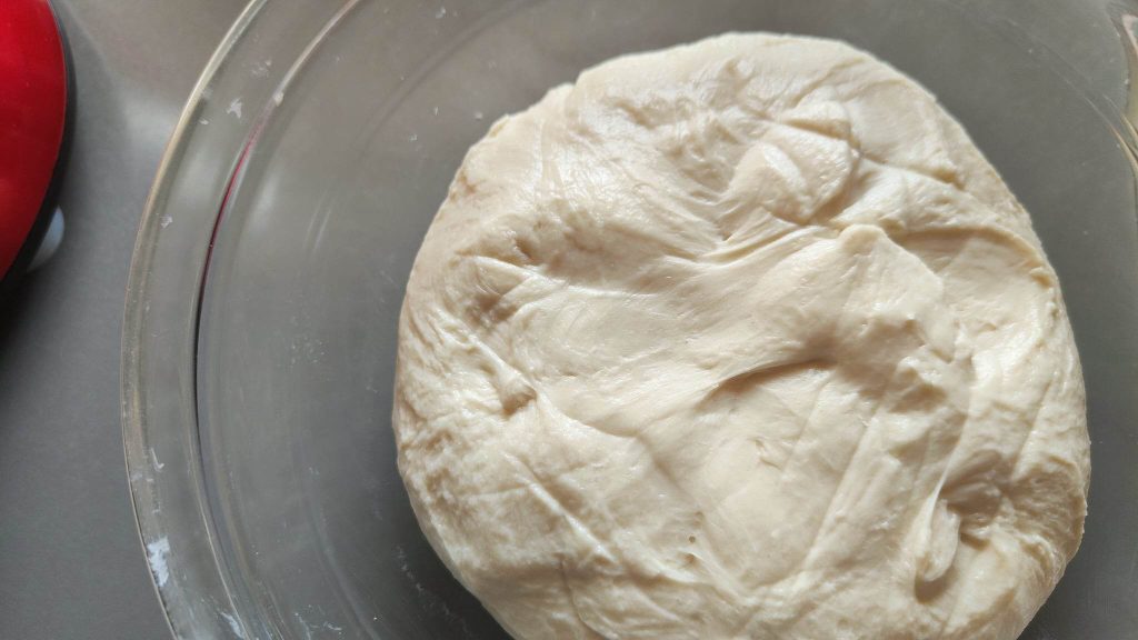 • Totdat je een mooi glad en zacht deeg krijgt, vorm dan een bal en laat deze rijzen in een kom bedekt met plasticfolie of een doek voor minstens 1,5 uur in de oven met het licht aan.