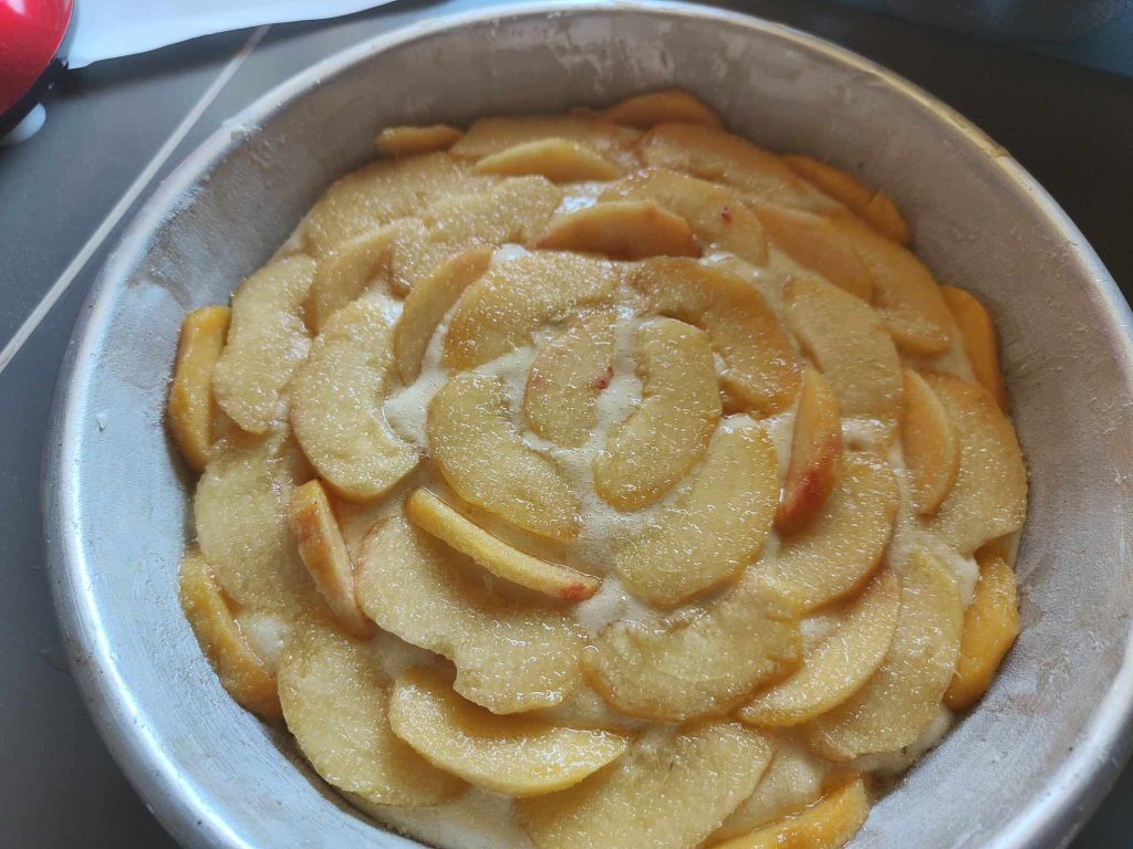 Je kunt ze vervangen door de variëteit die je verkiest, of het nu witte, gele, perziken of zelfs ingemaakte perziken zijn als je het buiten het seizoen wilt maken. Kies in dit geval rijpe vruchten die de juiste zoetheid en smaak geven voor deze cake.