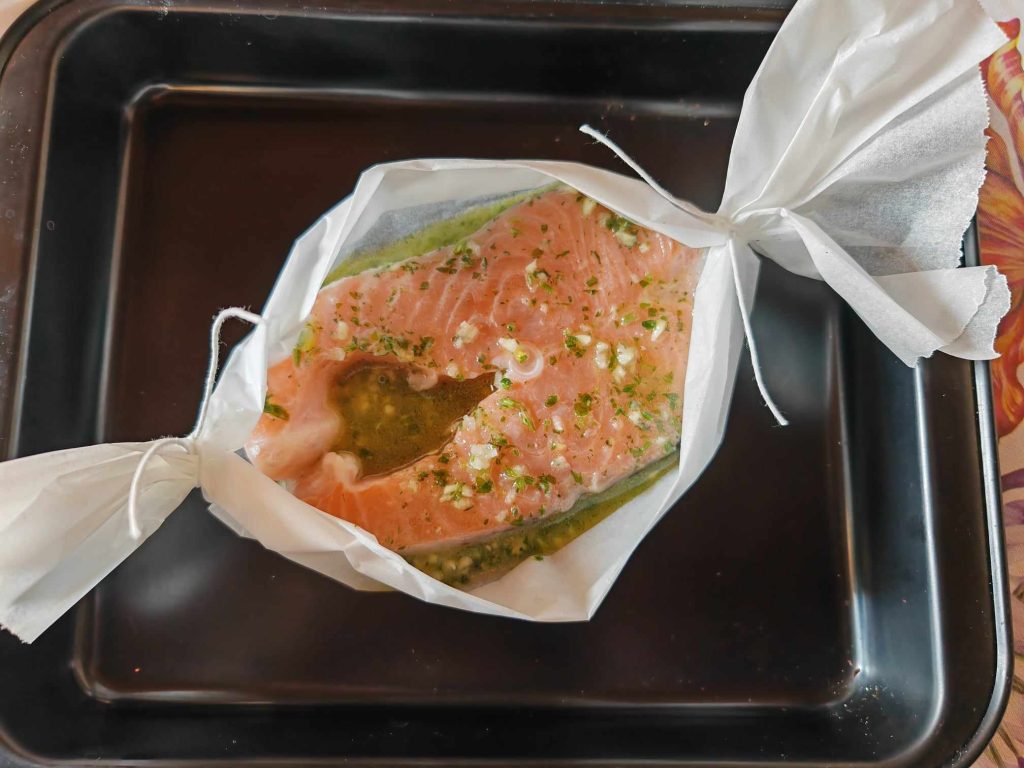 In wezen gaat het om vis in folie, maar omdat de zalm in plakken (of filets) is, is het nog gemakkelijker en sneller om te bereiden en te eten omdat het niet veel schoongemaakt hoeft te worden.