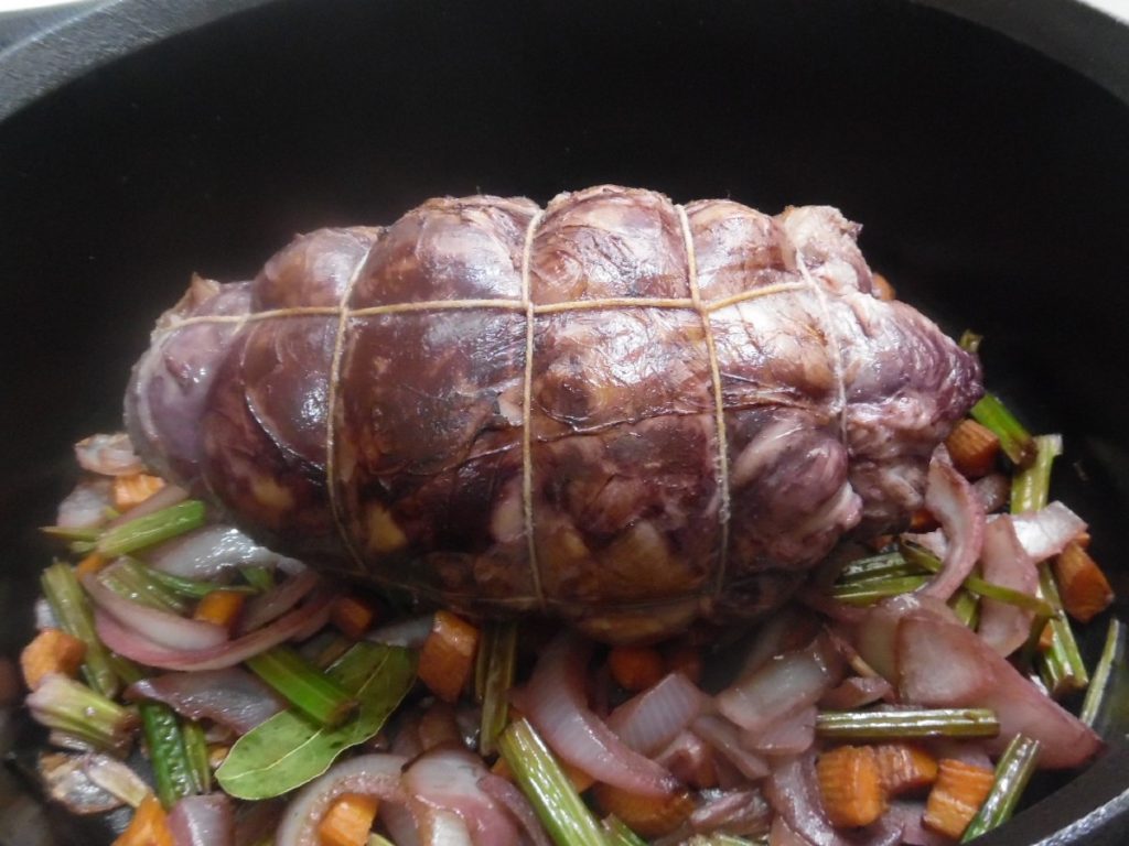 Het vlees moet minstens drie uur koken of zelfs langer. Halverwege de kooktijd draai het om naar de andere kant en ga verder met koken.