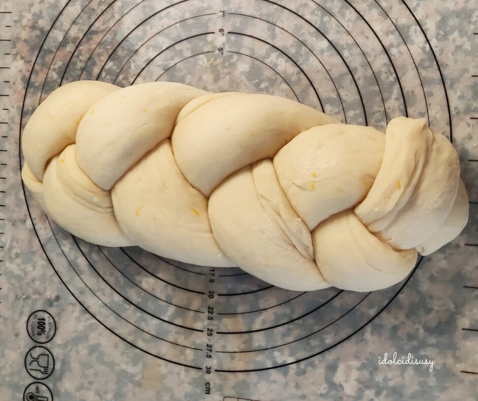 • Ik plaats het op de bakplaat en laat het rijzen voor een twintigtal minuten. Tot slot bestrijk ik het met een losgeklopte eidooier, bestrooi met suikerparels en bak het in een voorverwarmde oven op 180°C in de statische modus voor 30/35 minuten. Na het bakken haal ik het briochebrood uit de oven en laat het afkoelen voordat ik het serveer.