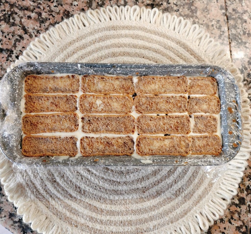 Ja, je kunt savoiardi, oro saiwa of lichte droge koekjes gebruiken. Het belangrijkste is dat ze dun en doopbaar zijn.