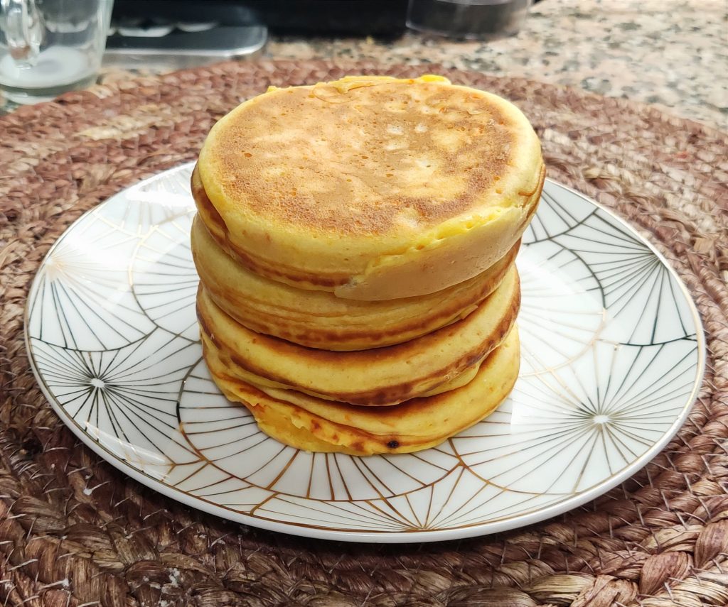 Deze ochtend werd ik wakker met het idee om pompoenpannenkoeken te maken. Ik had nog wat pompoen over in de koelkast, van het vorige recept van pompoenmuffins met chocoladestukjes, en ik had een vrije dag. Vandaag geen werk, dus ben ik de keuken ingegaan en heb ik dit supergemakkelijke en snelle recept gemaakt. Zodra de pompoen in stukjes is gekookt in de airfryer of magnetron, maak je het beslag en bak je de pannenkoeken. Ik gebruikte een pannenkoeken- of crêpepan, maar je kunt elke antiaanbakpan gebruiken!