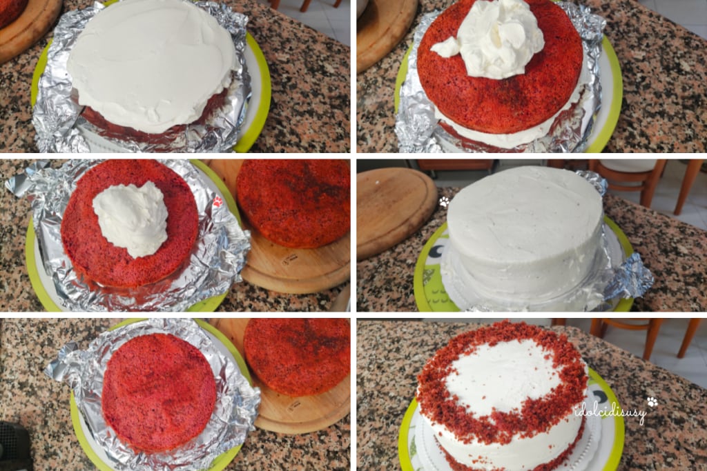 Het is een perfecte basis om een laagjestaart mee te maken, het heeft geen siroop nodig omdat het al vochtig en zacht is, dus laten we deze prachtige en indrukwekkende rode taart ontdekken!