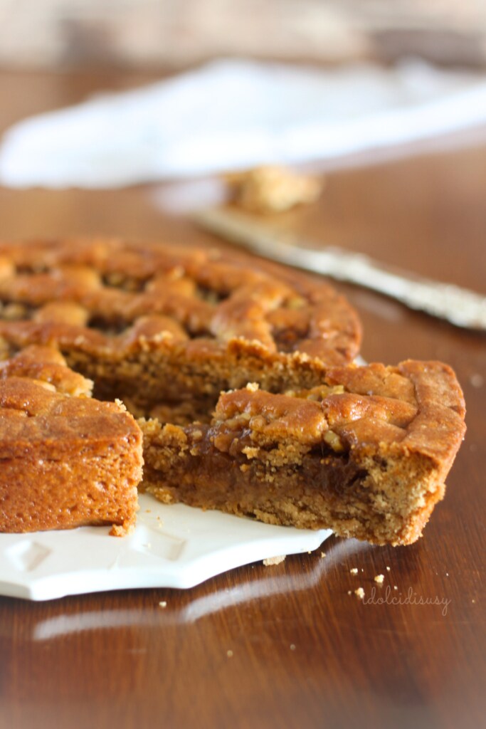 De taart met verse vijgen en walnoten is het perfecte dessert voor een snack of ontbijt in de zomer. Mijn recept is gemaakt met volkoren speltdeeg, met zelfgemaakte jam van verse vijgen in stukjes gesneden en walnoten.